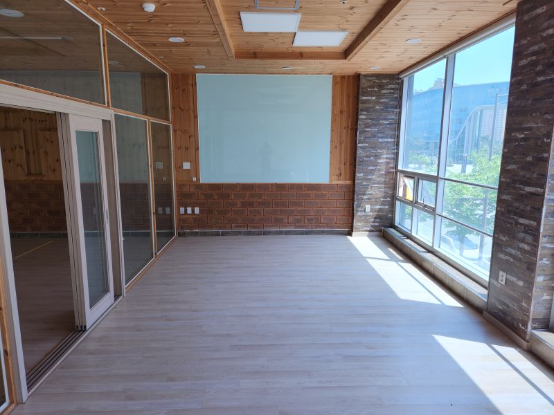 - 천정 바닦 되어 있으며 편백나무로 인테리어 되어 있는 사무실 입니다.
